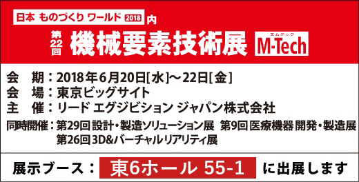 2018年6月20日(水)~22日(金)に東京ビッグサイトにて開催される第22回機械要素技術展に出展致します